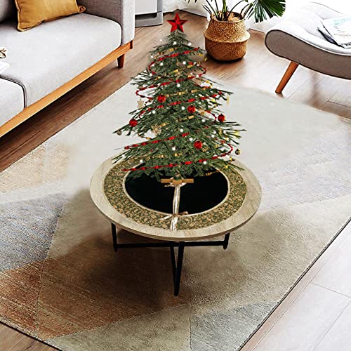 HomeArt & CraftChristmas OrnamentsChristmas Vibes Brands 24 INCH Green Christmas Tree Skirt Velvet with Jacquard Brocade Fabric Border & Thick Double Layer for Tabletop Tree(5929S)