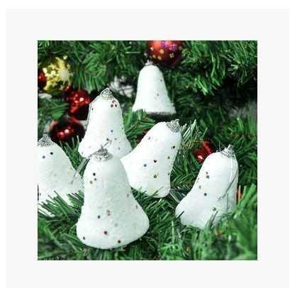 Christmas Vibes White Assorted Christmas Tree Decorations - Star Bell and Snowball - 2.5 Inch Set of 6