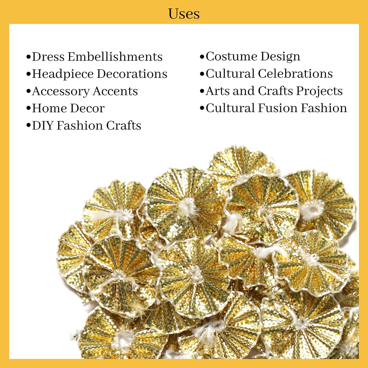 Stylish Design: Each patch has pretty Gota Patti flowers in a shiny gold color. They'll make your creations look elegant and unique.