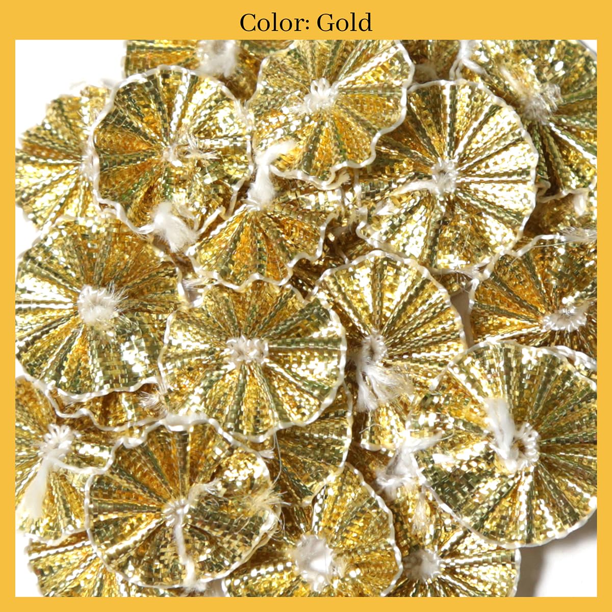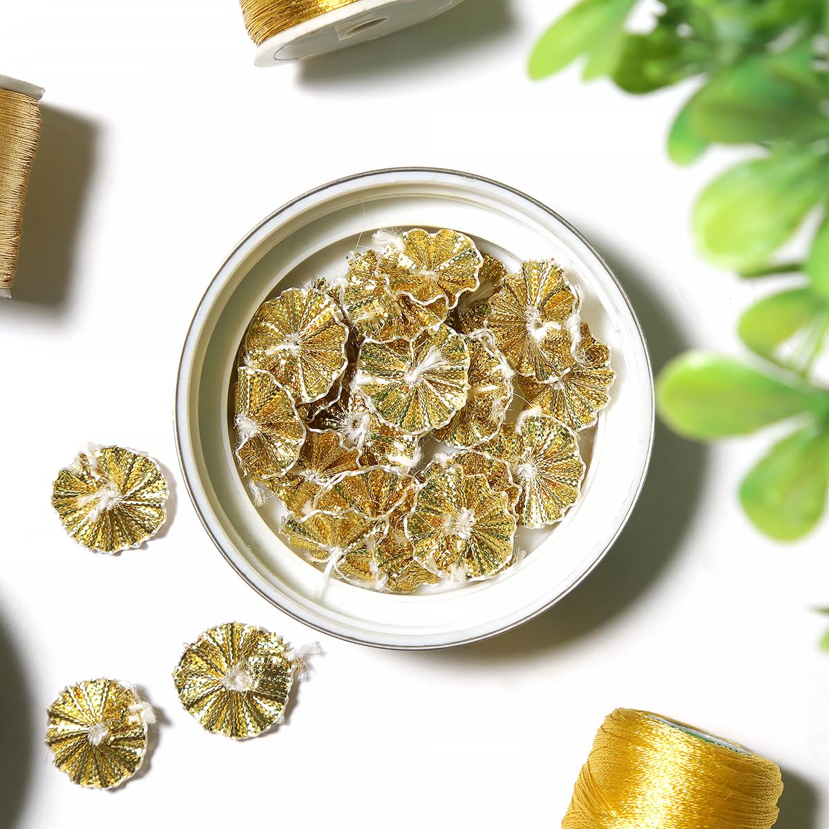 EmbroideryMaterial Gold Gota Patti Flowers Embroidery Patches for Clothes Applique Patches for Embroidery Work Gota Flowers for Decoration Crafts & Flowers for Dress Designing (25 Pieces Gold 1.7 CM)
