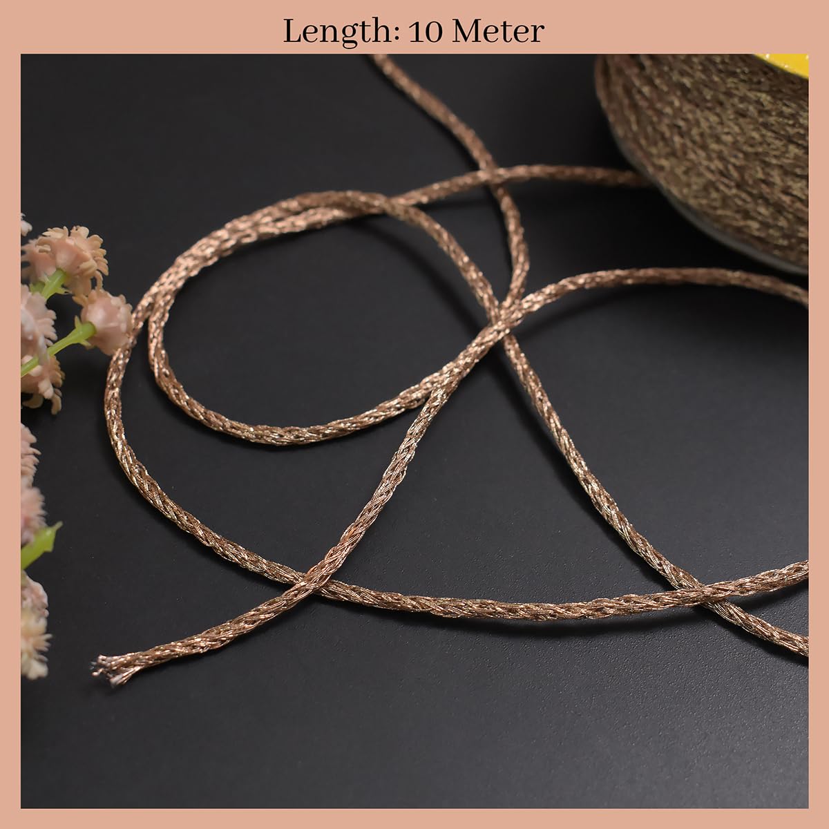 Embroiderymaterial Metallic Soutache Braided Cord Thread/Dori for Embroidery Aari Work Tassels Jewellery Bracelet Lace Crochet (Pack of 2 Rose Gold and Gold 3MM Width 10 Mtr/Roll) (Rose Gold)