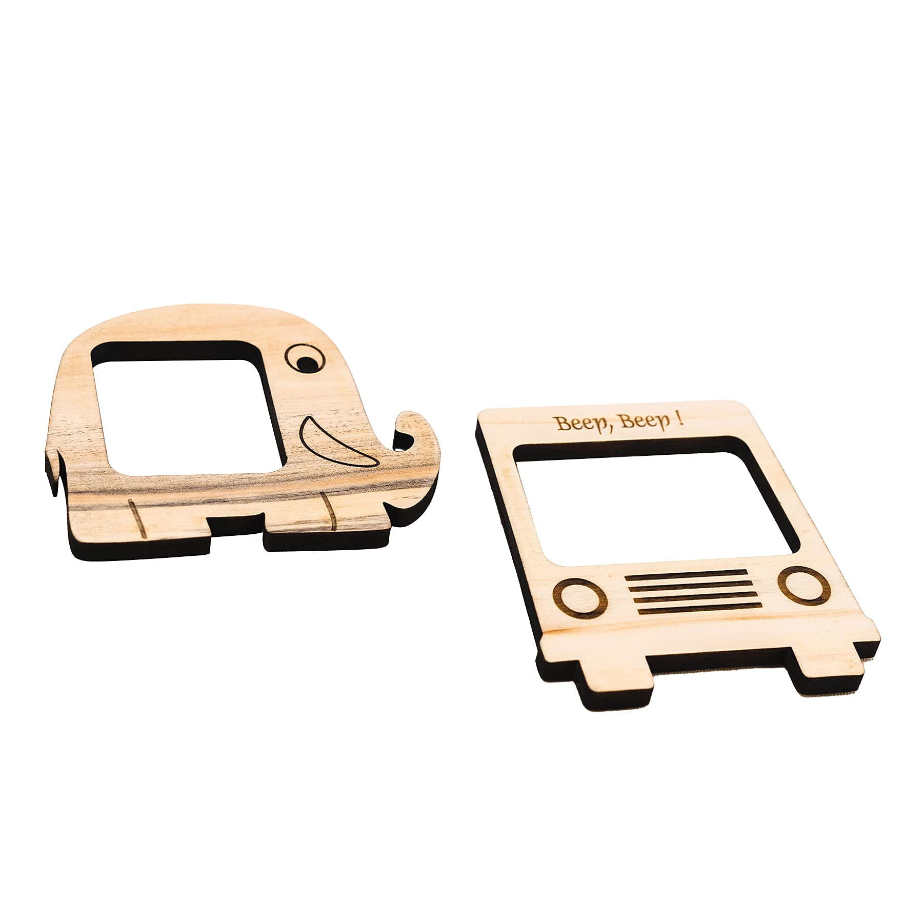 IVEI Bus and Elephant Shaped Wooden Photo Magnet - Set of 2 Wood Magnets for Fridge - Magnet Board for Kids - Fridge Magnets