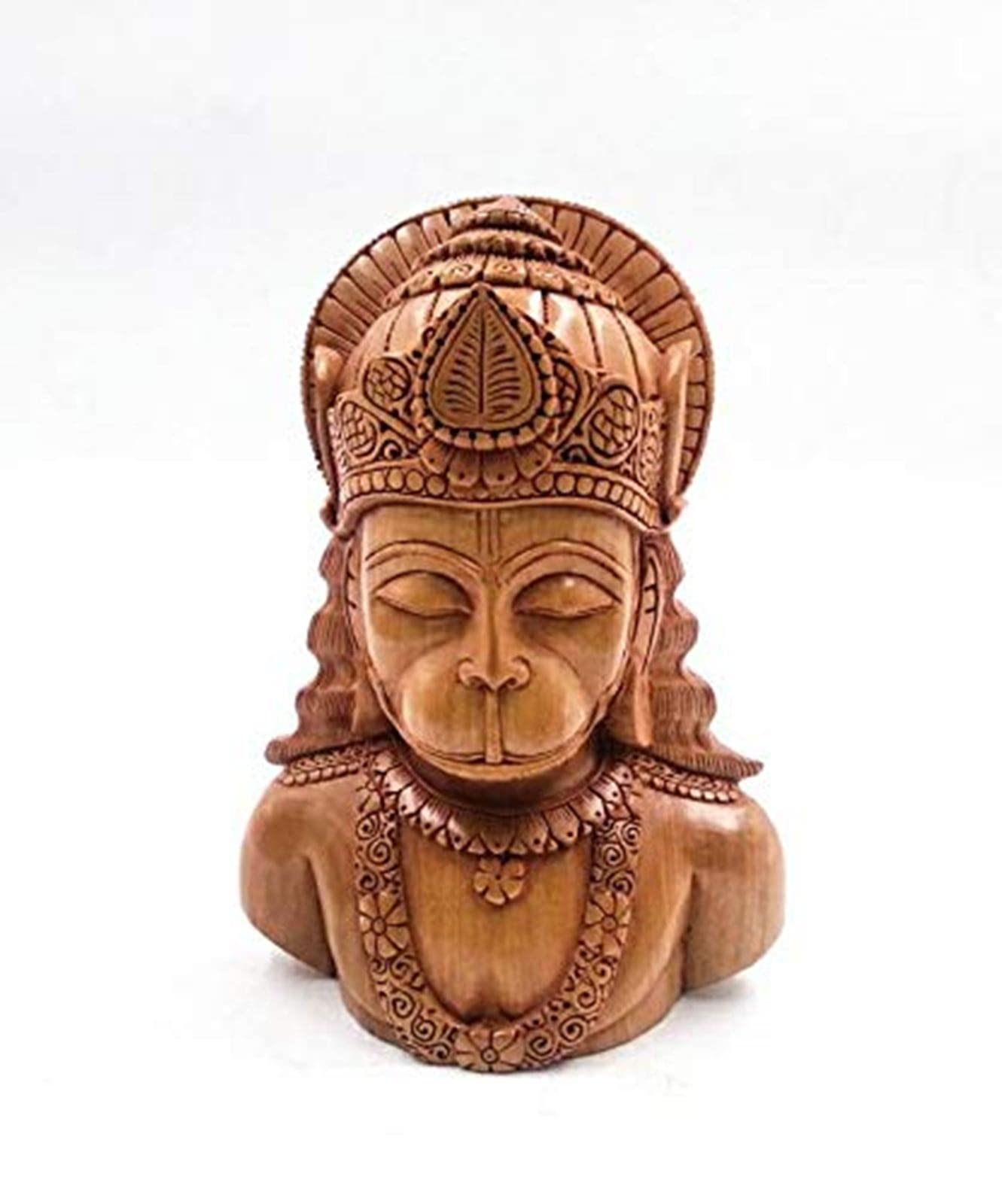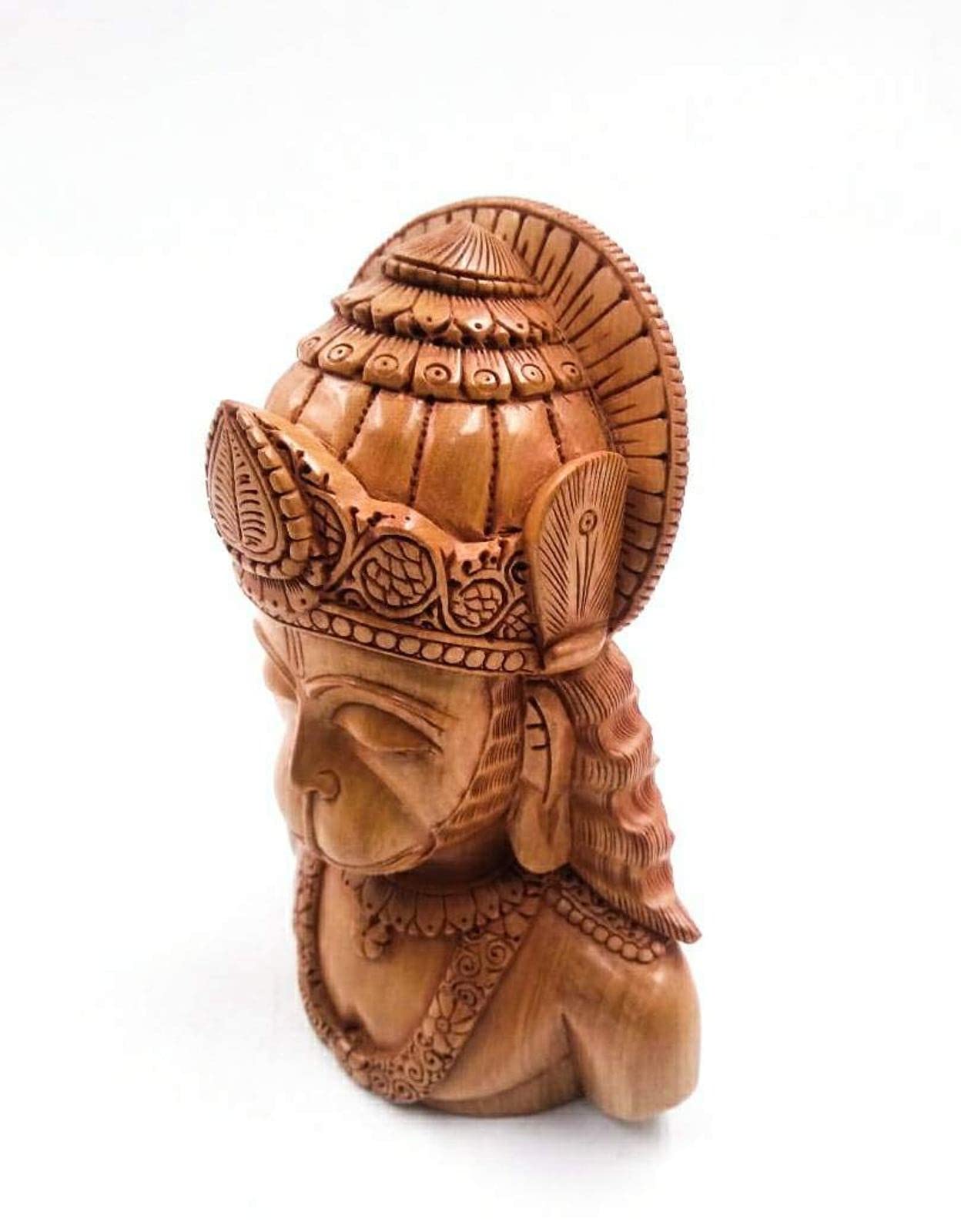 CHURU SANDALWOOD CARVED Wooden Special Fine Carving Lord Hanuman Face Sculpture ( 6" Standard Brown )