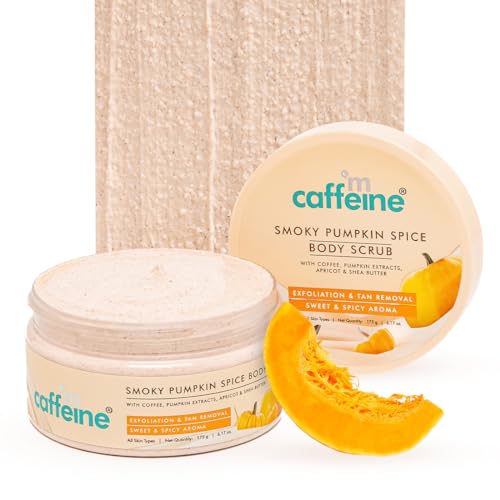 mCaffeine Smoky Pumpkin Spice Body Scrub for Glowing Skin| Coffee, Pumpkin Extracts, Apricot & Shea Butter | Exfoliate, Remove Tan, Nourish, Moisturize | Sweet & Spicy Aroma for Men & Women - 175g