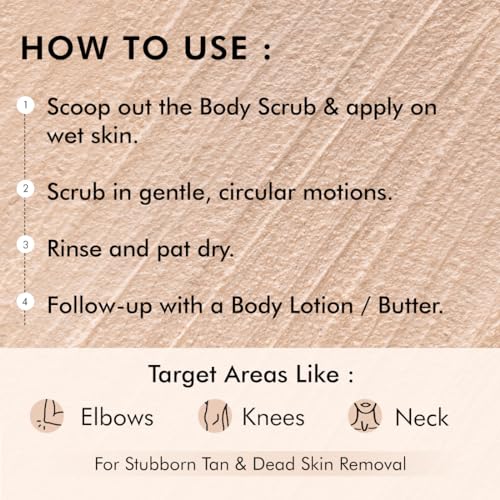 REMOVES TAN TO REVEAL CLEAR SKIN: The antioxidant-rich coffee in this body scrub helps in tan removal and supports the growth of new skin cells. Additionally it enhances skin texture and smoothens and rejuvenates the skin