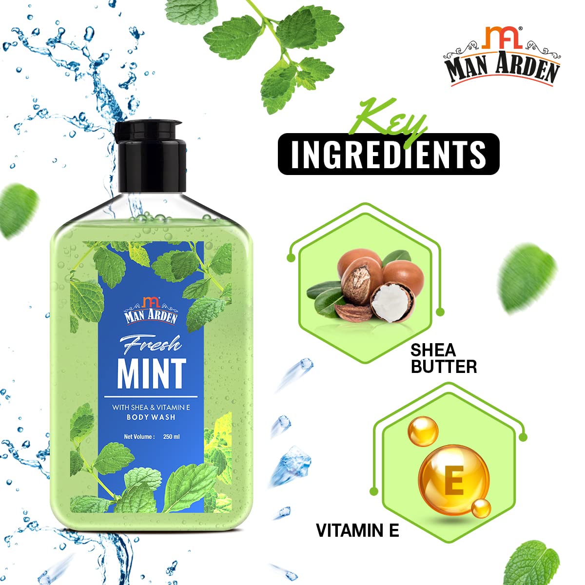Man Arden Fresh Mint Luxury Body Wash Infused With Shea Butter & Vitamin E 250ml