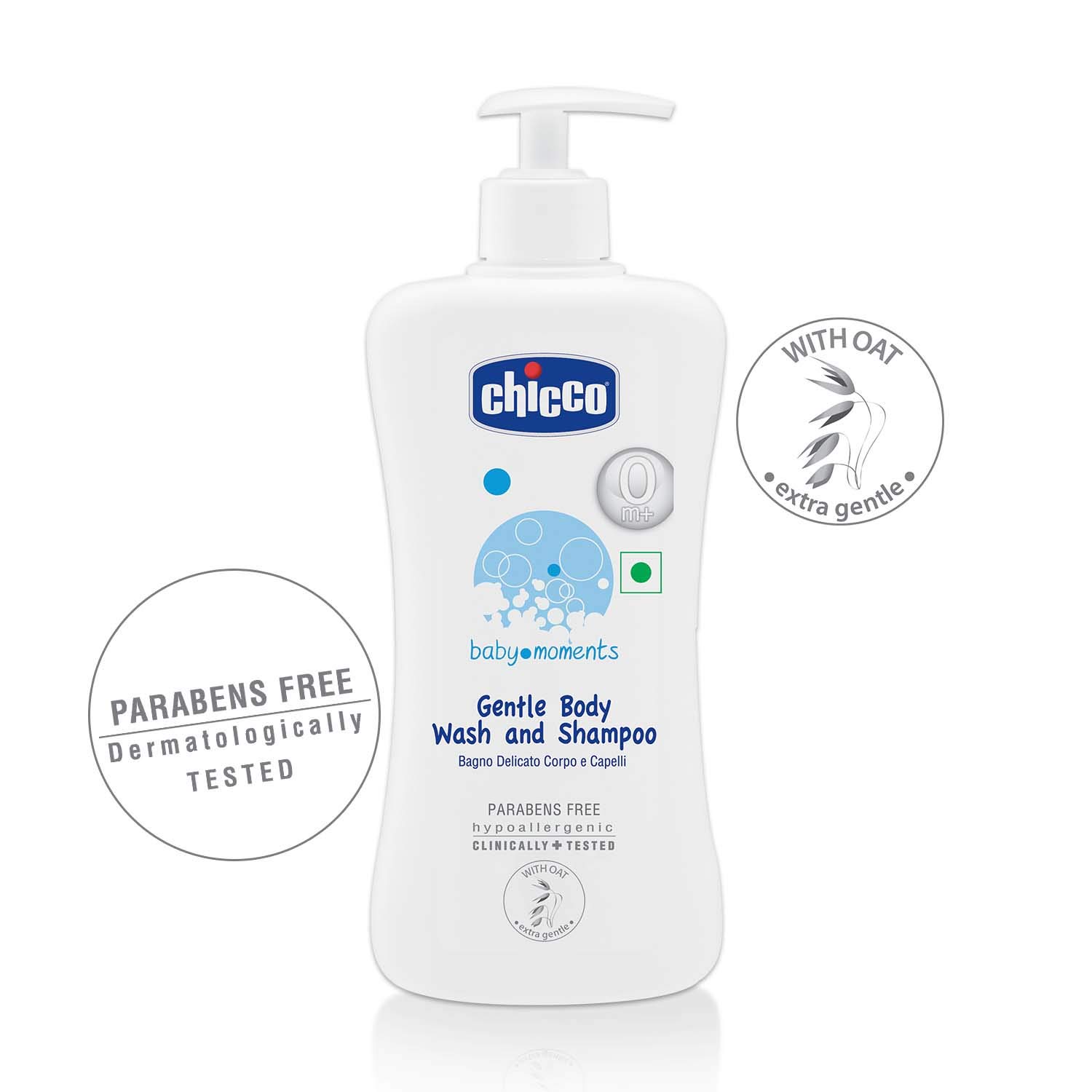 Chicco Baby Moments Gentle Body Wash and Shampoo for Soft Skin and Hair Dermatologically tested Paraben free (500 ml)
