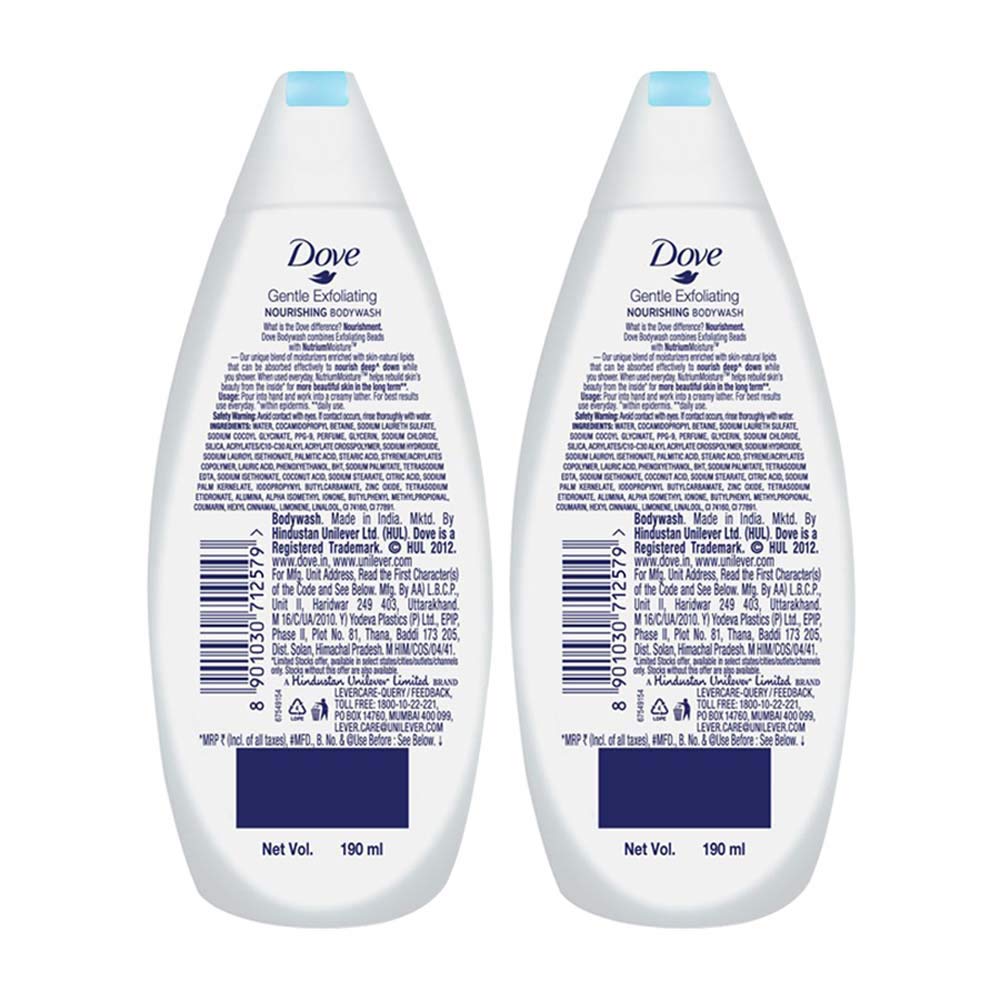 Dove Gentle Exfoliating Nourishing Body Wash 190 ml (Pack of 2)