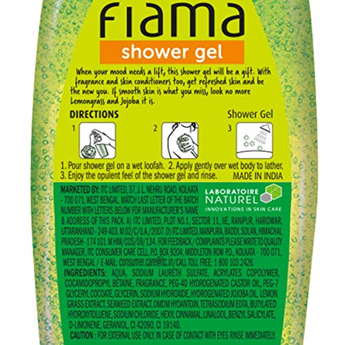 Fiama Lemongrass And Jojoba Clear Springs Shower Gel, 500Ml & Shower Gel - Lemongrass & Jojoba, Gentle Exfoliation, With Skin Conditioners, 250 Ml