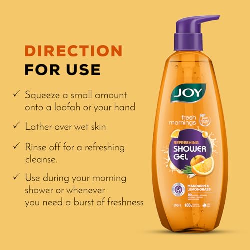 HomeBeautyBodyBath & ShowerShower Gels & Body WashJoy Mandarin & Lemongrass Shower Gel Body Wash (500 ml) | With Vitamin C for Acne Control & Lemongrass for Fighting Body Odour |100% Vegan Shower Gel For All Skin Types | Paraben Free