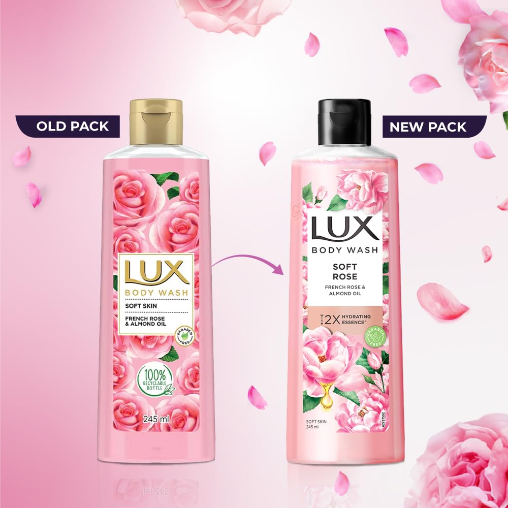Lux Shower Gel French Rose Fragrance & Almond Oil Bodywash With Glycerine For Soft & Glowing Skin Paraben Free 245 ml
