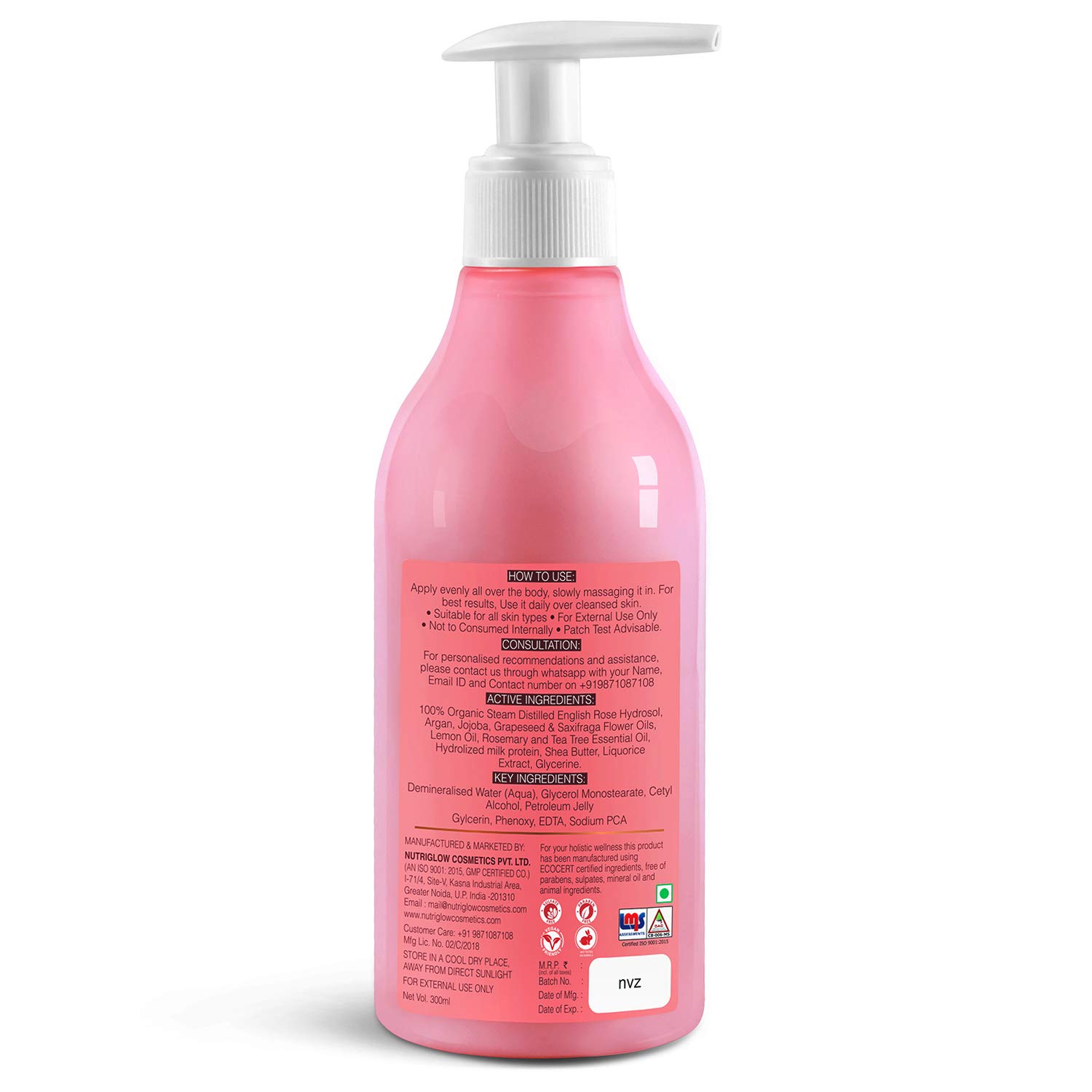 NutriGlow NATURAL'S English Rose Body Milk For Intensive Nourishment 8 Hour Moisture Lock & Repairs Skin Damage No Parabens & Mineral Water 300 ml