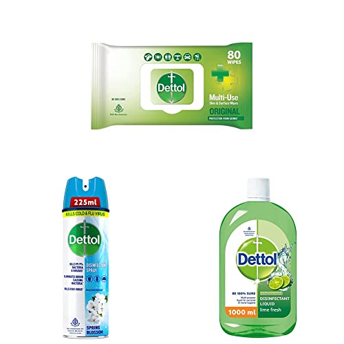 Dettol Handwash No-Touch Automatic Soap Dispenser Device with Aloe Vera Refill, 250ml + No Touch Aloe Vera Refill, 250ml + Liquid Disinfectant, Lime Fresh, 1L