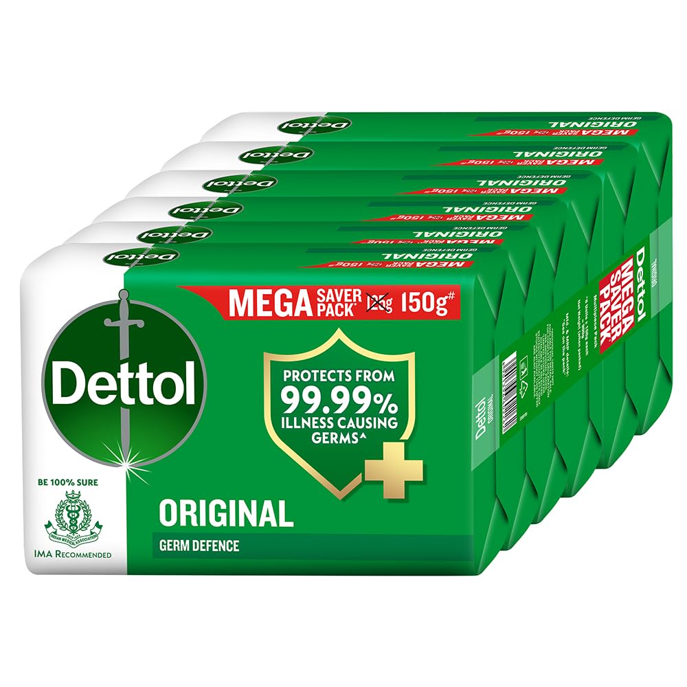 Dettol Original Germ Protection Bathing Soap Bar (900gm) | Kills 99.99% germs 150g - Pack of 6