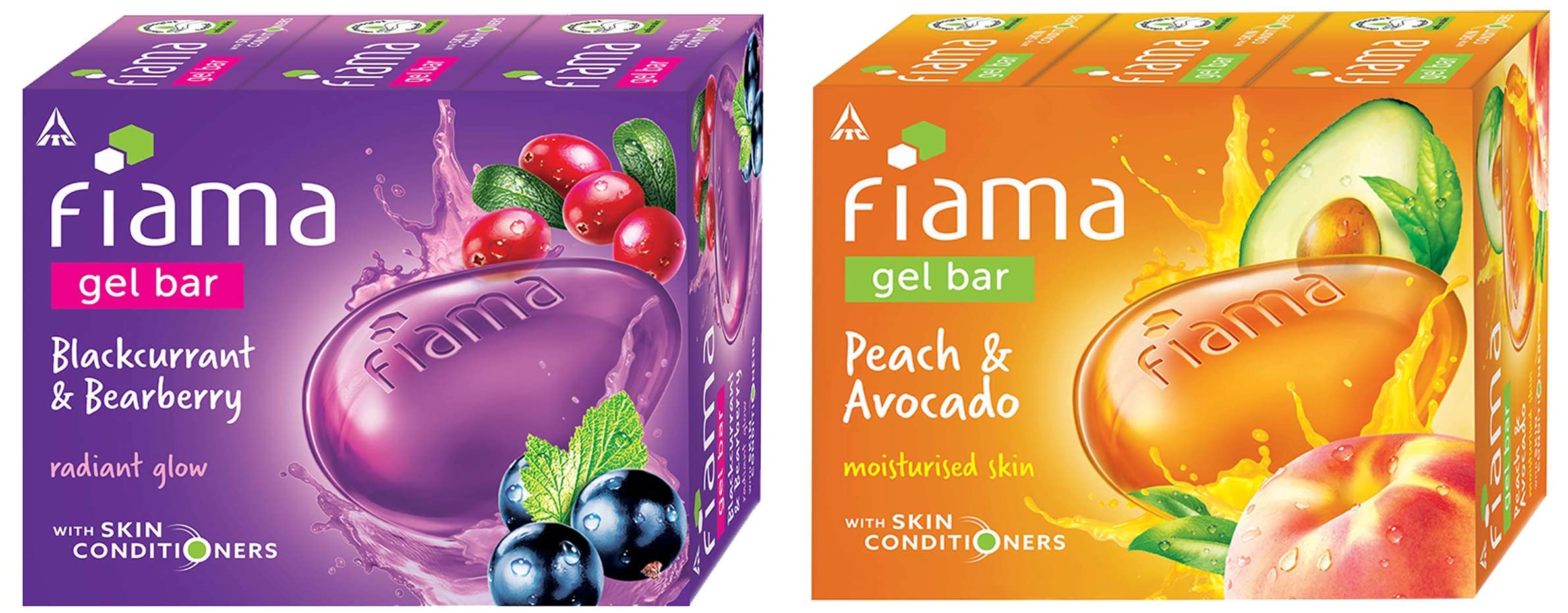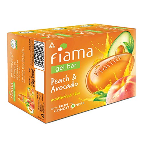 HomeBeautyBodyBath & ShowerSoapsFiama Gel Bar Blackcurrant and Bearberry for radiant glowing skin 125 g soap (Pack of 3) & Fiama Gel Bar Peach and Avocado for moisturized skin 125 g soap (Pack of 3)