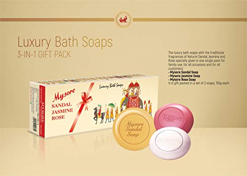 Mysore Sandal, Jasmine And Rose Soap, 450g (Pack Of 3) and Mysore Sandal Body Wash, 200 ml with Free Loofah