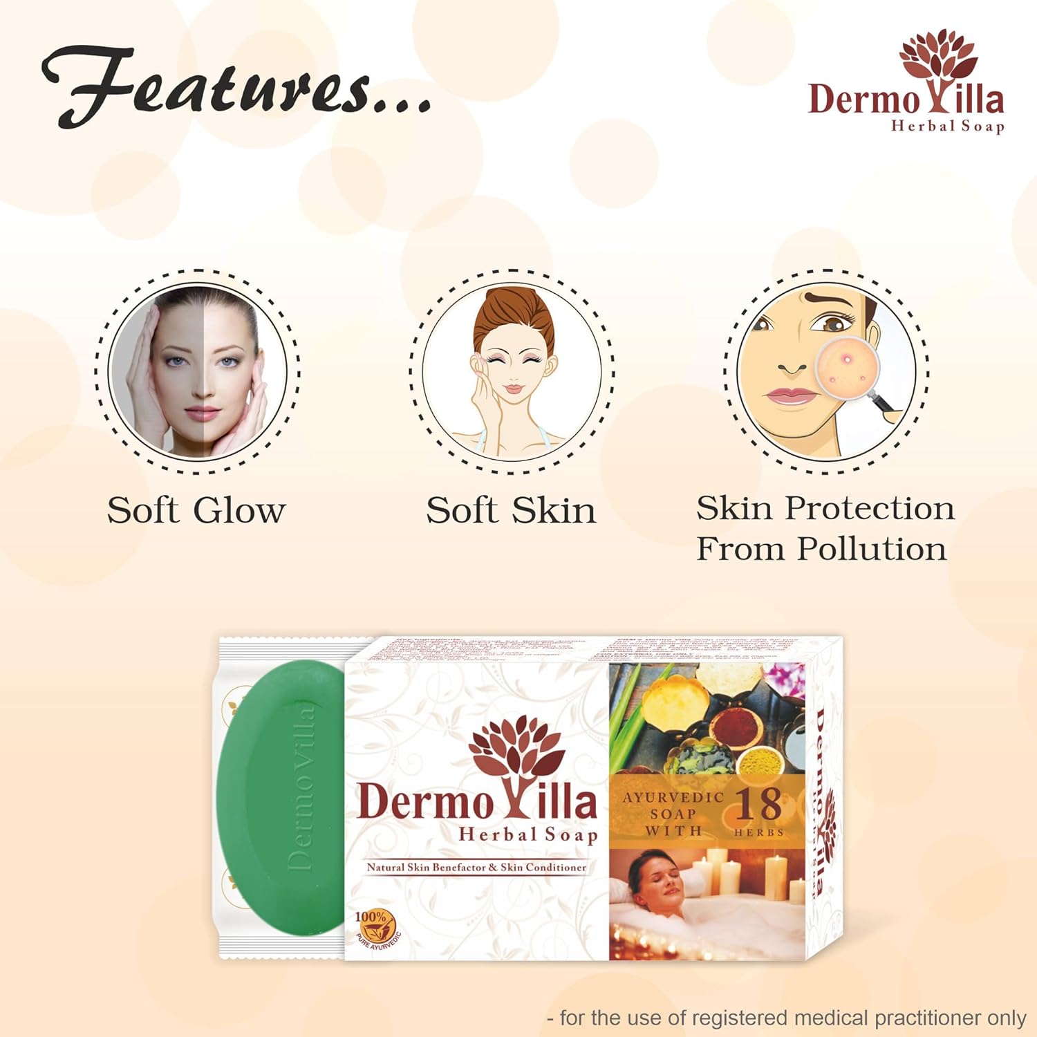PRM Dermo Villa Ayurvedic Daily Bathing Soap 75g (Pack of 2) Cleanses & Protects Skin with Haldi, Tulsi, Neem & Karanj
