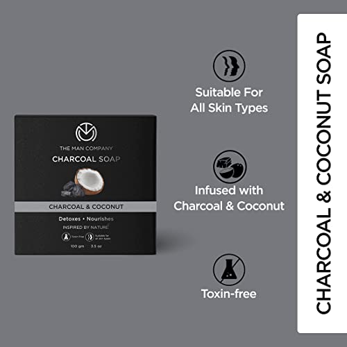 HomeBeautyBodyBath & ShowerSoapsThe Man Company Charcoal Soap With Coconut Detoxes & Nourishes Infused With Charcoal & Coconut Toxin-Free Suitable For All Skin Types Prevents Dryness Removes Dead Skin (100 g (Pack of 2))