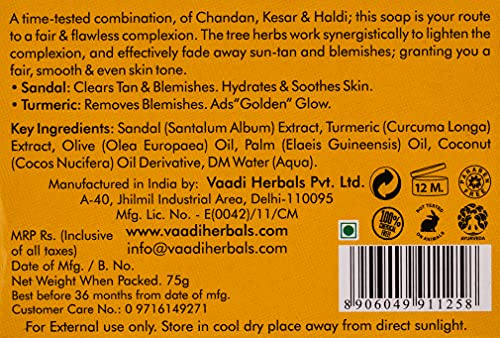 Vaadi Herbals Divine Sandal Soap with Saffron and Turmeric, 75g