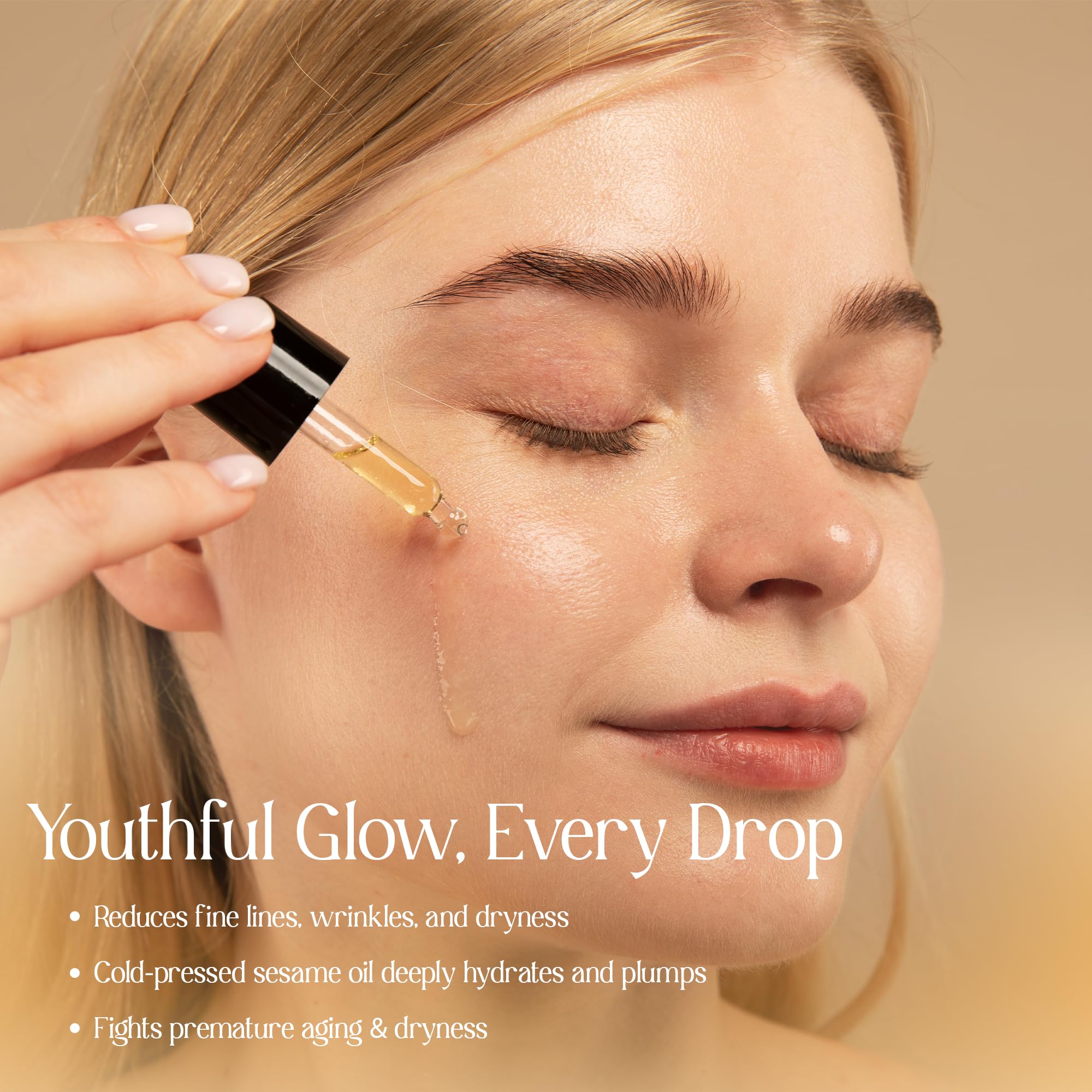 Infused with 24K Gold Flakes: This luxurious Kumkumadi oil enhances skin elasticity boosts blood circulation and imparts a radiant golden glow making your skin visibly brighter firmer and more youthful with every use.