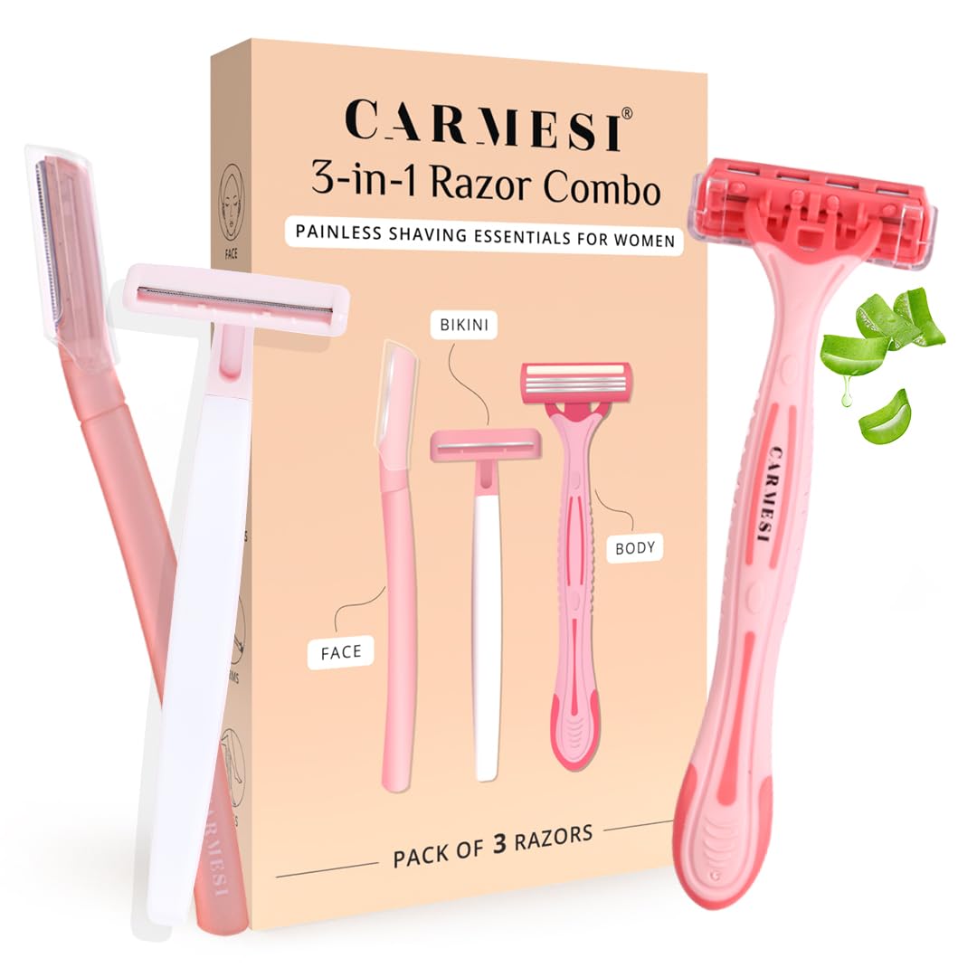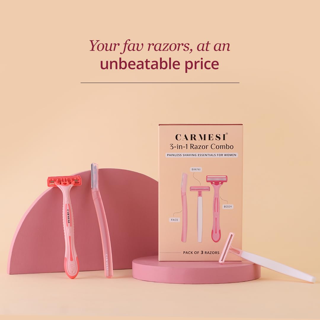 Carmesi 3-in-1 Razor For Women Combo | 1 Face Razor 1 Bikini Razor 1 Body Razor | Value Pack for Instant & Painless Shaving | Full-Body Grooming | Soft & Silky Skin