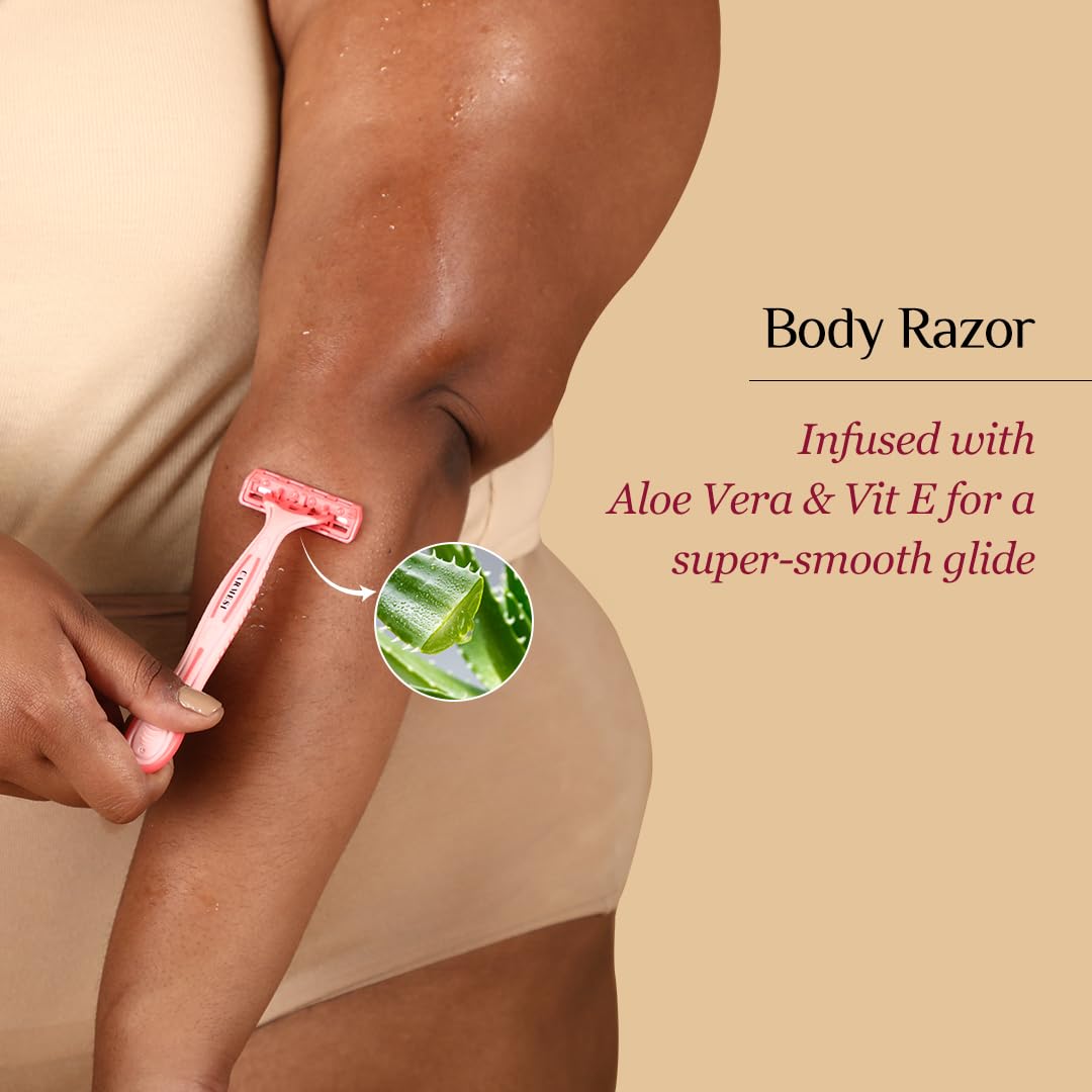 FUZZ-FREE ARMS & LEGS: Infused with Aloe Vera the Body Razor lets you remove hair from your arms underarms and legs in a smooth stroke.