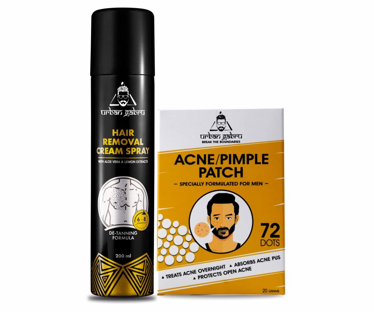 HomeBeautyBodyShaving & Hair Removalurbangabru Men Hair Removal Cream Spray (200 Ml) + Acne Pimple Patch (72 Dots) - Body And Face Care Combo Kit Pack of 1