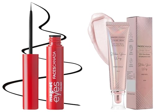 FACESCANADA Strobe Cream - Rose Gold, 30Ml And Faces Canada Magneteyes Eyeliner - Black, 3.5Ml