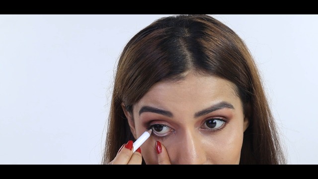 Draw smooth even lines by starting at the inner corner of the upper eyelid. Move the brush tip outwards.
