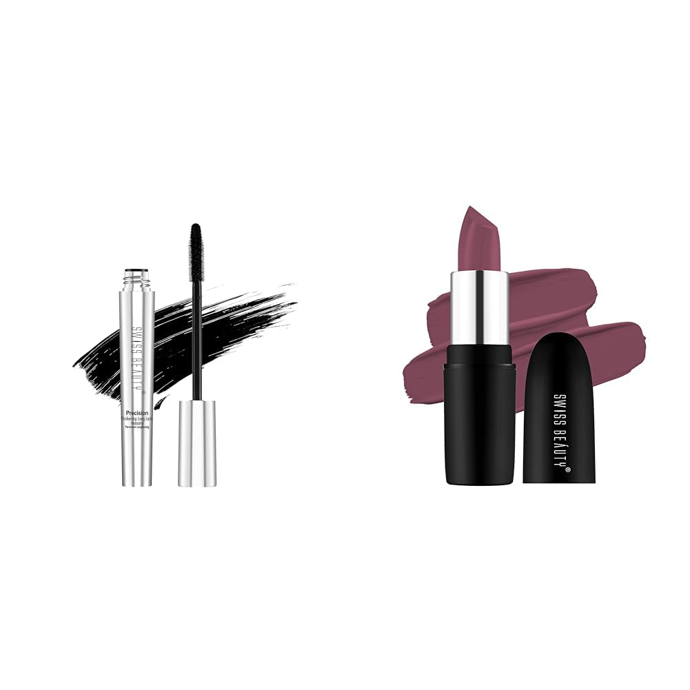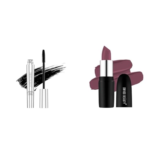 Swiss Beauty Waterproof Volume Mascara| Jet Black, 8.5Ml | & Swiss Beauty Pure Matte Lipstick | Long Lasting, Hydrating & Lightweight Lipstick | Peaches N Cream, 3.8gm|