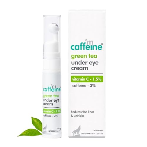 HomeBeautyEyesUnder Eye CreammCaffeine Green Tea Under Eye Cream to Reduce Fine Lines, Wrinkles & Dark Circles | 3% Caffeine, 1.5% Vit C & Peptides to Reduce Puffiness & Refresh Skin | Cooling Gel & Roller for Men & Women-15 ml