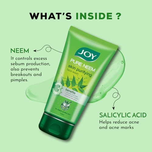 HomeBeautyFace CareCleansersFace WashJoy Skin Purifying Neem Face Wash for Oily & Acne-Prone Skin | Fights Pimples, Controls Excess Oil & Unclogs Pores | Natural Antibacterial Formula | Men & Women 100ml x 2