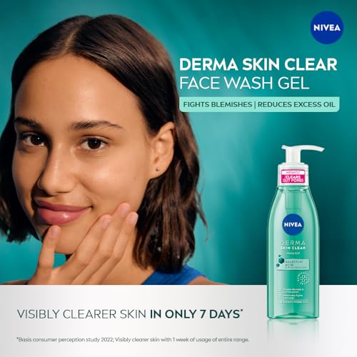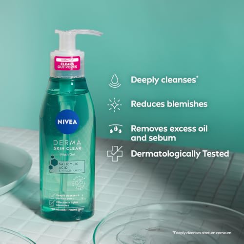 HomeBeautyFace CareCleansersFace WashNIVEA Derma Skin Clear Wash Gel (150ml), Deep Cleansing Face Wash Gel, Salicylic Acid Face Wash Enriched with Niacinamide to Cleanse Pores and Remove Impurities