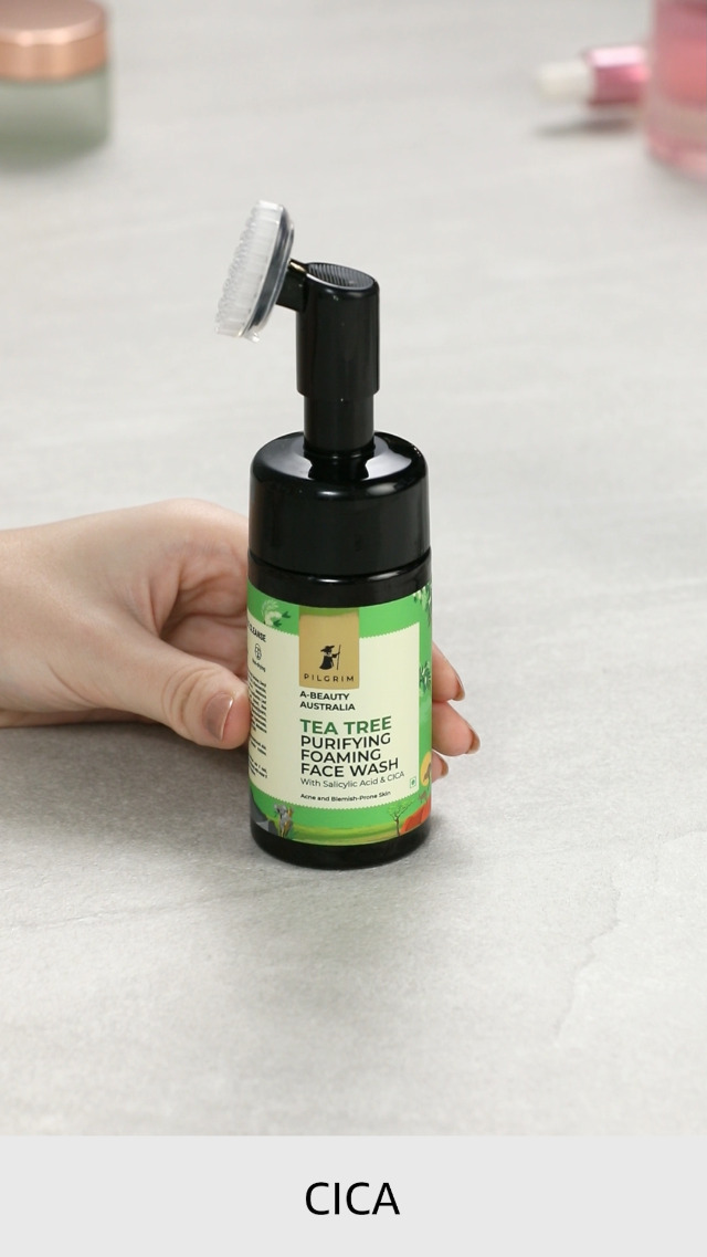 PILGRIM Australian Tea Tree & 1%Salicylic acid Foaming Face wash with brush|Tea Tree face wash with 1%salicylic acid & CICA for oily skin,acne and pimples|Oily skin cleanser for face|Women & Men|120ml