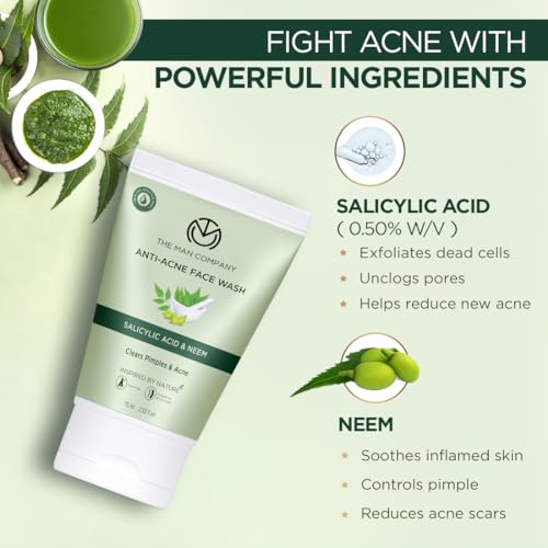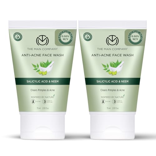 HomeBeautyFace CareCleansersFace WashThe Man Company Anti-Acne Face Wash For Men- 75ml (Pack of 2) | Clears Pimples & Acne | Reduces Inflammation | Unclogs Pores | Toxin-Free | Suitable For All Skin Types
