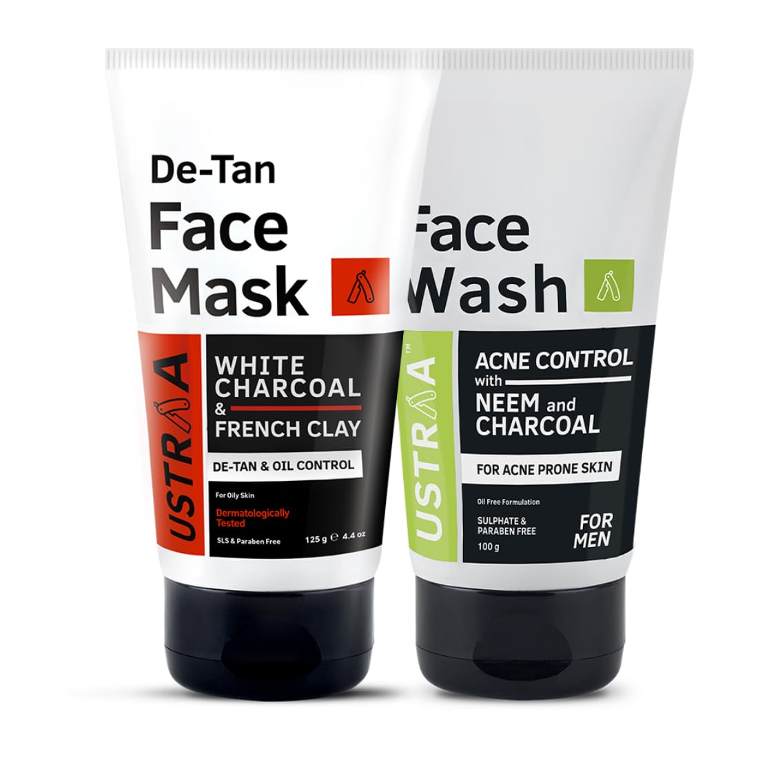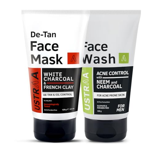 HomeBeautyFace CareCleansersFace WashUstraa De-Tan Face Mask Oily Skin - 125g - Effectively Removes Tan & Pollutants | White Charcoal & French Clay & Face Wash Acne Control - With Neem & Charcoal - 100g | Controls Oil, Prevents Acne