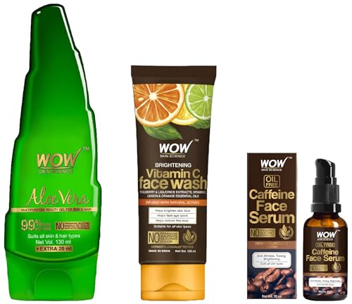 HomeBeautyFace CareCleansersFace WashWOW Skin Science Caffeine Face Serum - Quick Absorbing - Oil Free - Anti-Aging& Science Brightening Vitamin C Face Wash&Science 99% Pure Aloe Vera Gel For Face,Skin&Hair - 150Ml