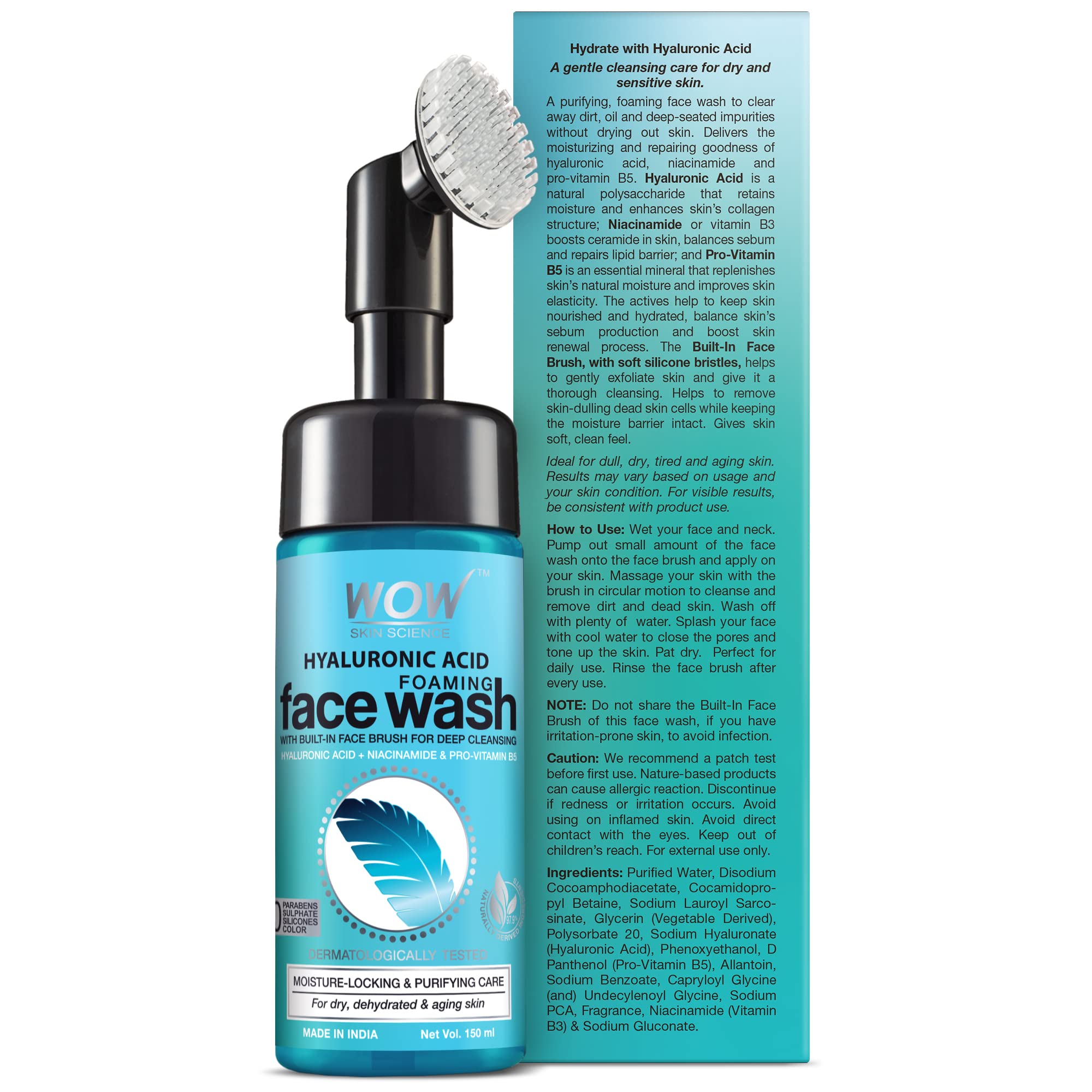 WOW Skin Science Hyaluronic Acid Foaming Face Wash - with Built-In Brush - Facial wash for Dry Skin & Intense Face Cleansing - 150ml