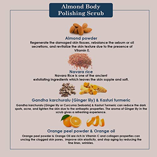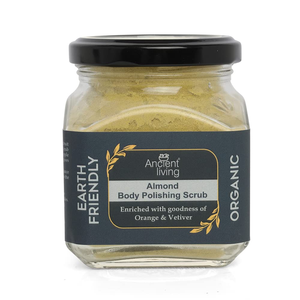 Ancient Living Organic Almond Body Polishing Scrub – 100g Jar |Removes Dead skin | Orange & vetiver| Natural Body Scrub | Paraben-Free & Chemical-Free|