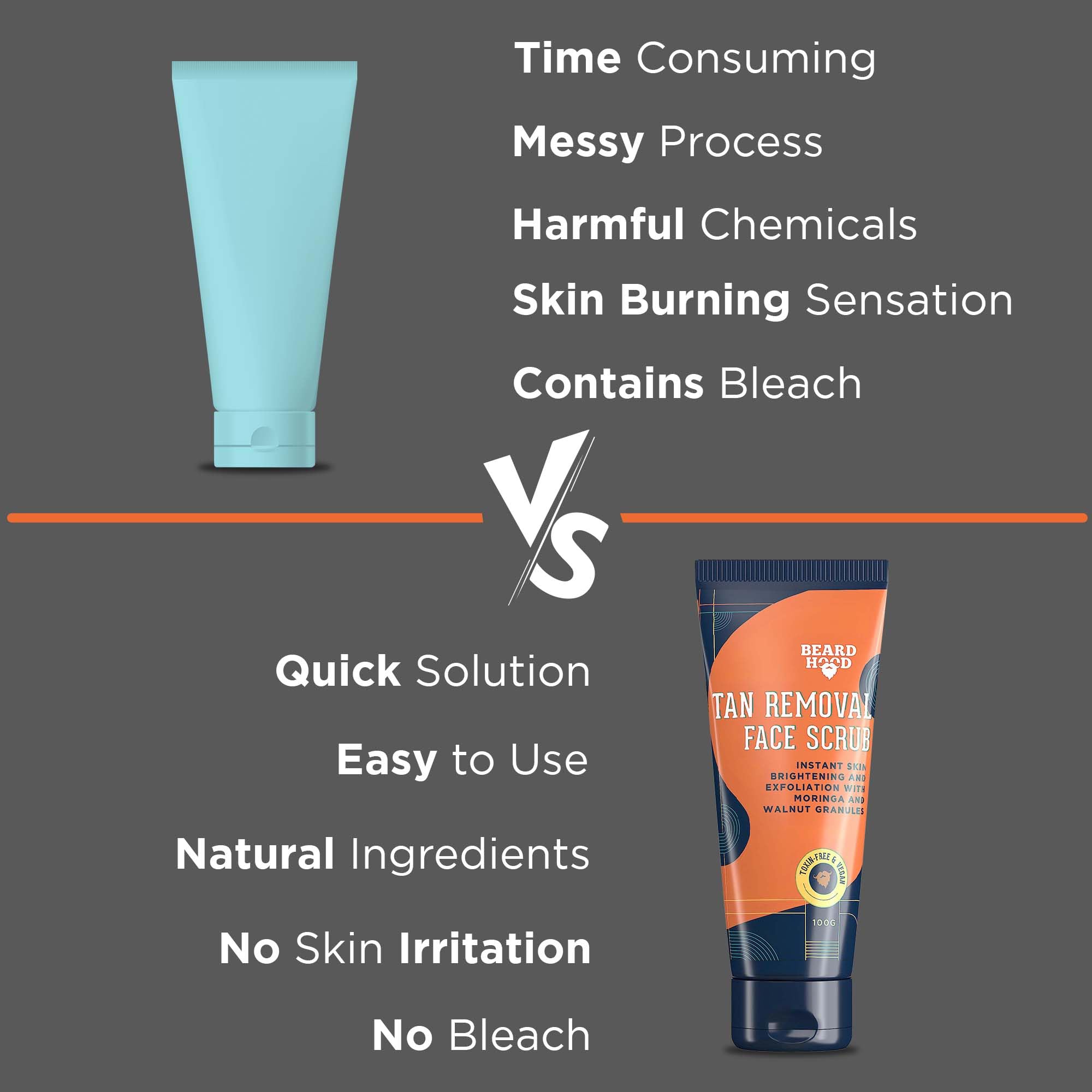 Sun and Dirt both can leave you with BAD TAN and mini-bumps on your face. Beardhood Tan Removal Face Scrub for women and men both digs out the dirt and grime deep in your skinrevive your ComplexionExfoliate and leave you with Icy Cool feeling