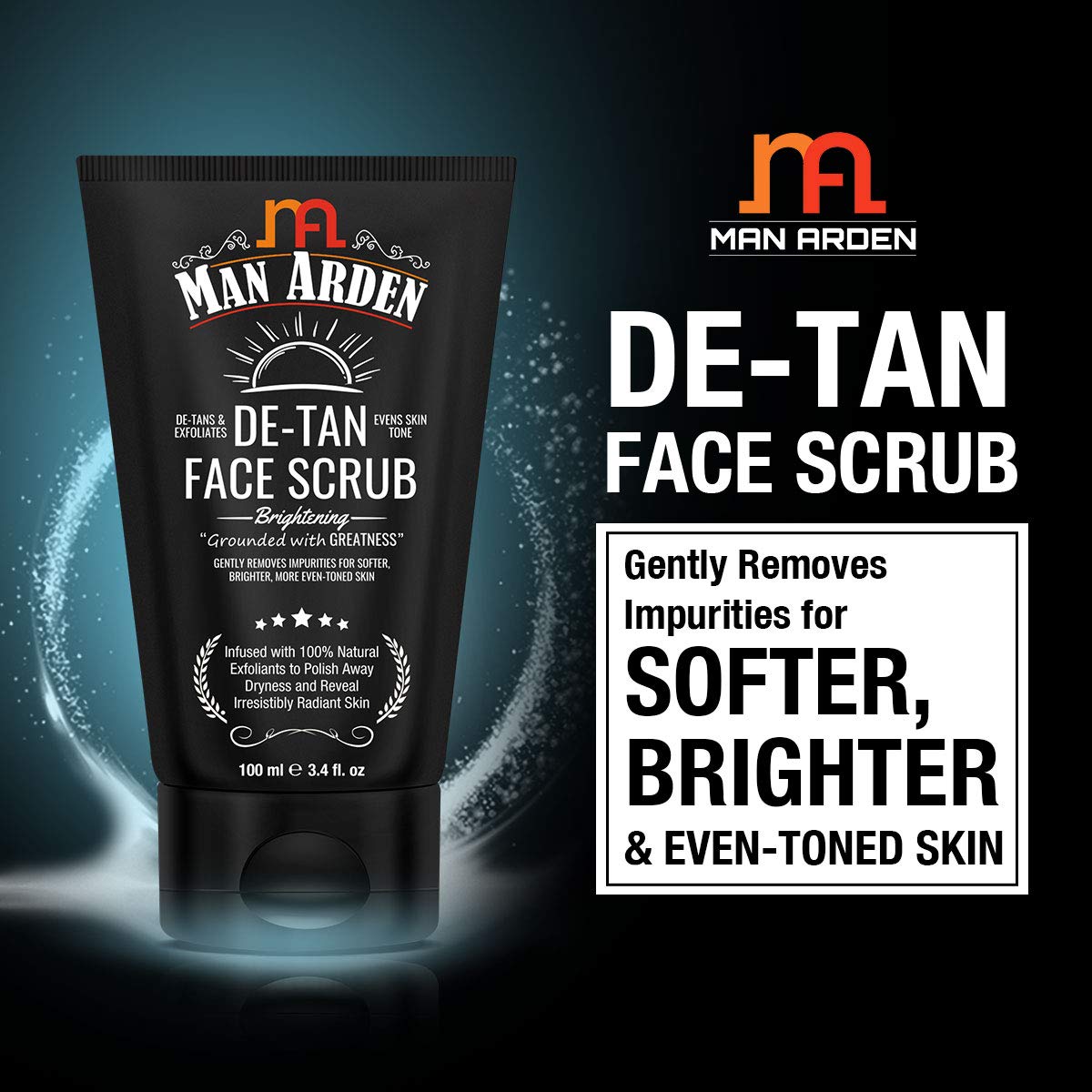 Man Arden De Tan Brightening Face Scrub 100ml - De-Tans & Exfoliates Skin - With Vitamin C