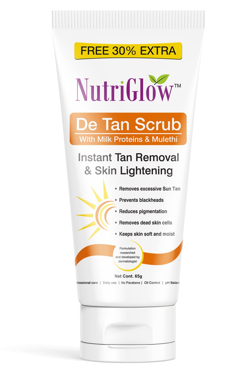 REMOVES STUBBORN TAN FROM THE SKIN: Do you want to get rid of harsh tan that's just refusing to go away? NutriGlow DE TAN SCRUB with Oatmeal eliminates tan and removes stubborn blackheads. On the other hand it helps exfoliate dead skin cells unclogs the p
