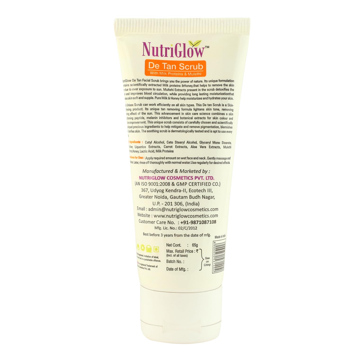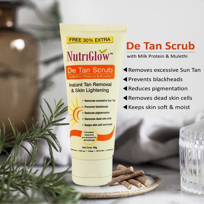 NutriGlow De Tan Scrub With Milk Protein & Mulethi For Deep Exfoliation Tan Removal Treatment Blackheads & Oily Prone Skin All Skin Types 65gm