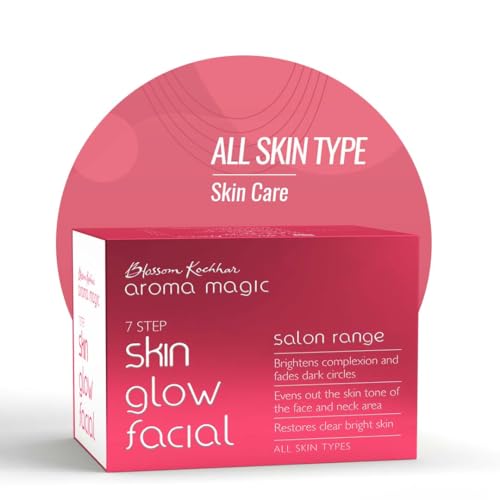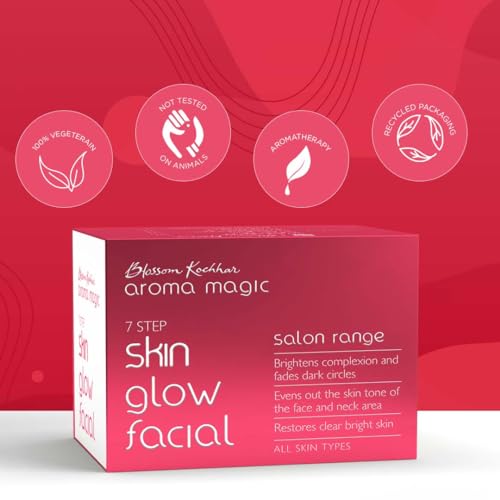 Aroma Magic 7 step Skin Glow Facial Kit | Brightens skin tone & restores clear, radiant skin | Soya & Witch Hazel Extracts | All Skin type | 5 Single Use Kit Set | Pack of 1