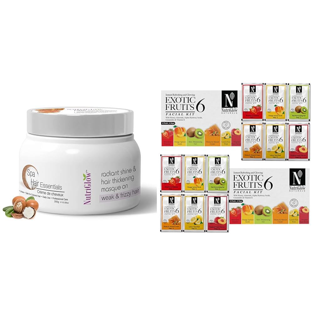 HomeBeautyFace CareFacial KitsNutriGlow Hair Spa Cream With Volumizing & Shine Lock Formula For Weak & Frizzy Hair 300g & Natural's Exotic Fruit Facial Kit with Honey Vitamin E for Radiant GlowPack of 2 (60 Gm Each)