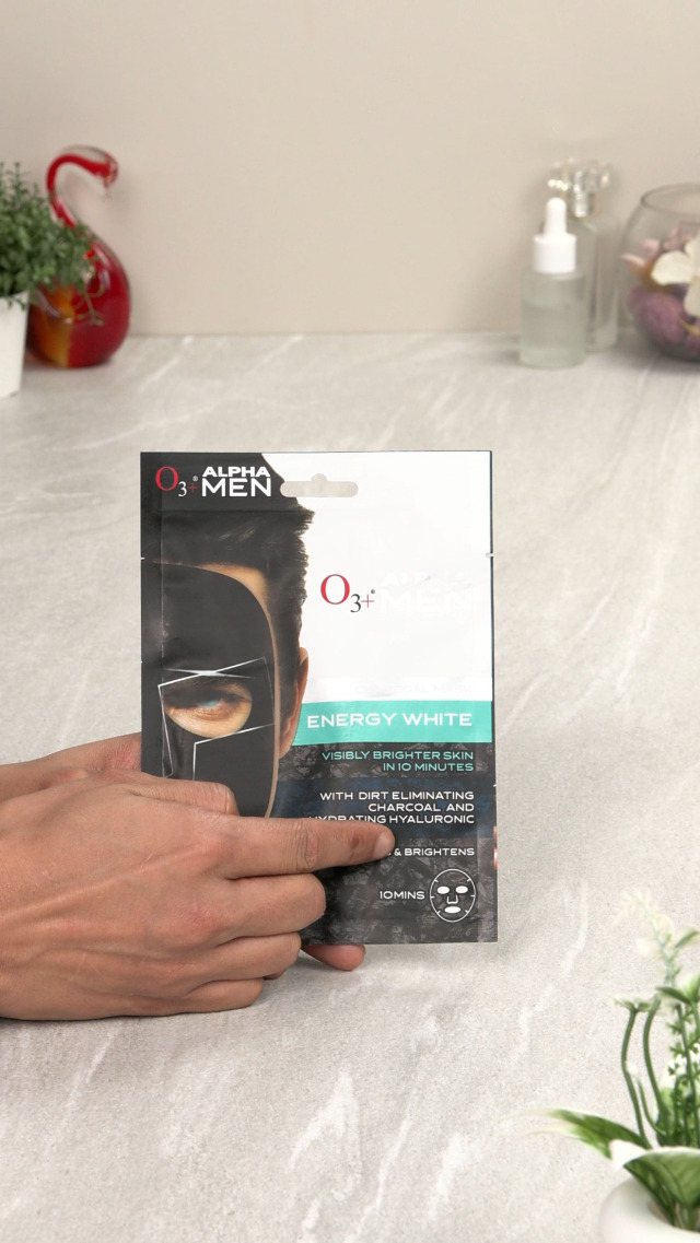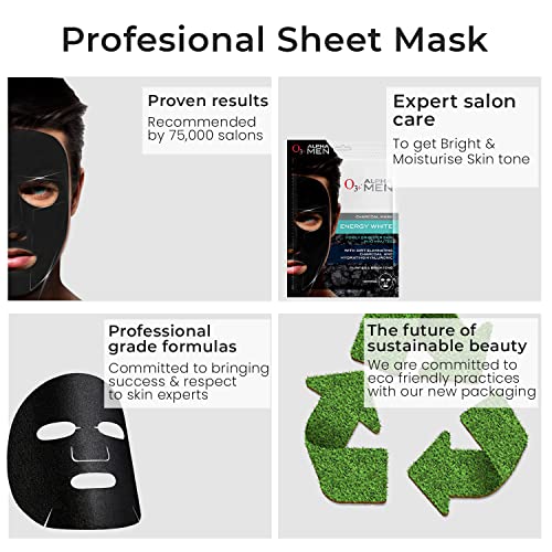 HomeBeautyFace CareMasksSheet MasksO3+ ALPHA MEN Energy White Charcoal Face Sheet Mask 30g with Charcoal & Hydrating Hyaluronic to Purify & Brighten Skin