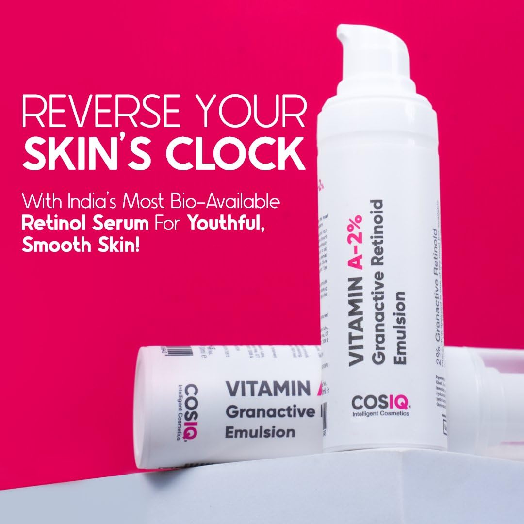 HomeBeautyFace CareMoisturizersSerum & EssenceCos-IQ 2% Vitamin A Granactive Retinoid Emulsion Face Serum | Vit-A Anti Ageing Night Cream Serum for Wrinkles Fine Lines & Acne | For Women & Men | 30ml
