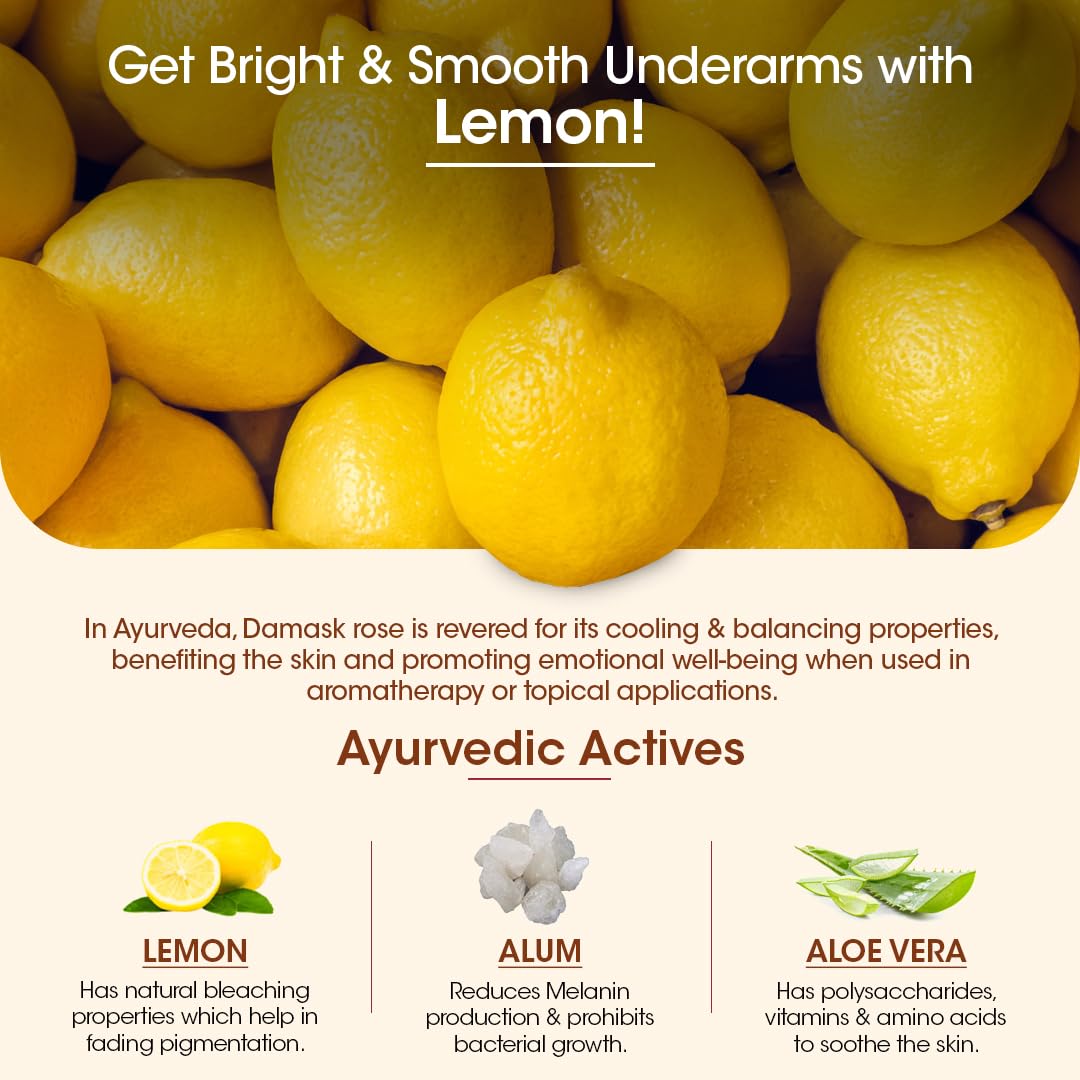 POWER OF LEMON & ALOE: Made with natural ingredients to lighten dark pigmented underarms this roll-on contains lemon extracts to depigment the skin and aloe vera to provide nourishment for brighter lighter and healthy underarms.