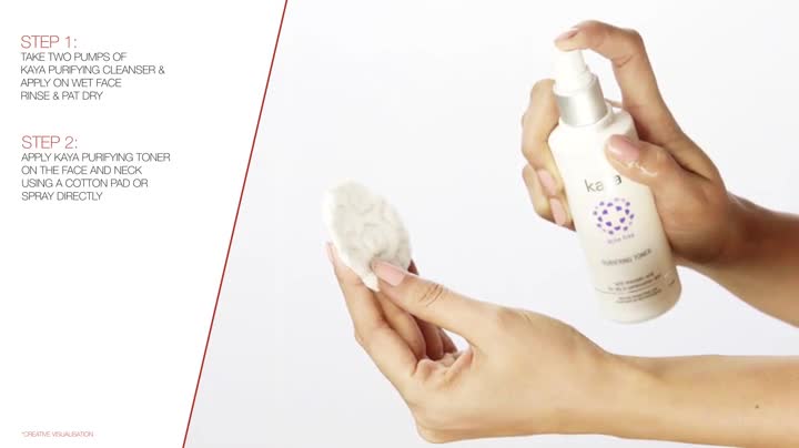 In step 2 use the Kaya purifying toner which is an alcohol free formula that gently exfoliates and helps unclogs pores