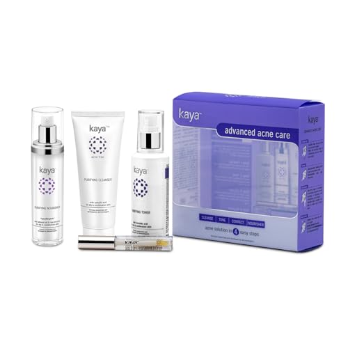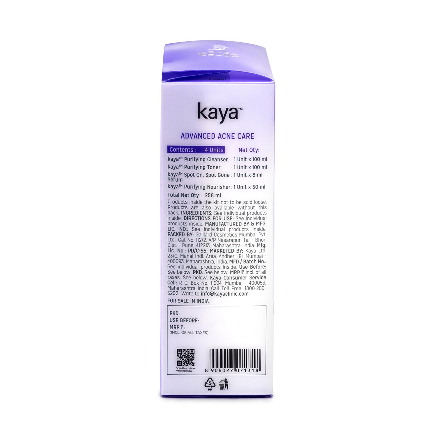 Kaya Advanced Acne Care kit is an advanced 4 step solution to get visibly clearer oil free and acne free skin and this kit consists of a face wash or cleanser a toner a spot corrector and a moisturizer
